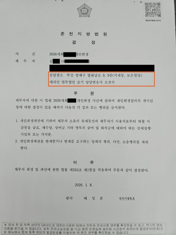 개인회생 사건에 관하여 개인회생절차의 개시 신청에 대한 결정이 있을 때까지