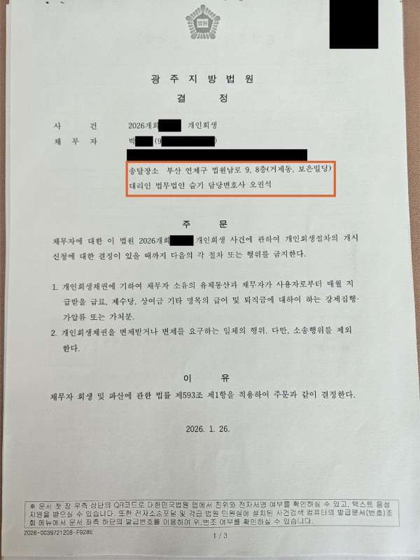 개인회생 사건에 관하여 개인회생절차의 개시 신청에 대한 결정이 있을 때까지