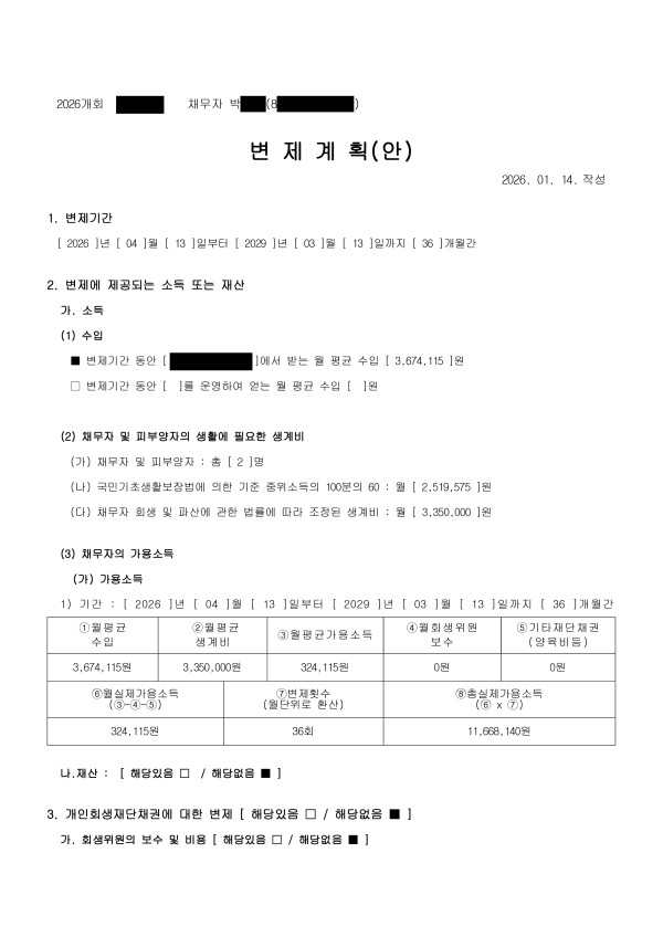 개인회생 변제계획안
